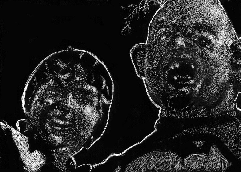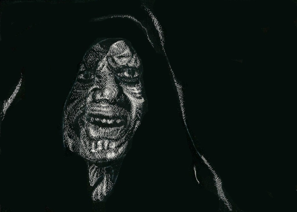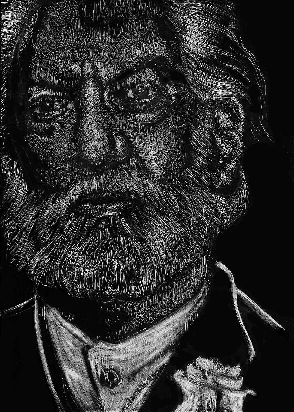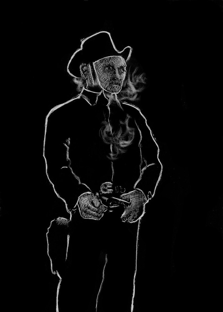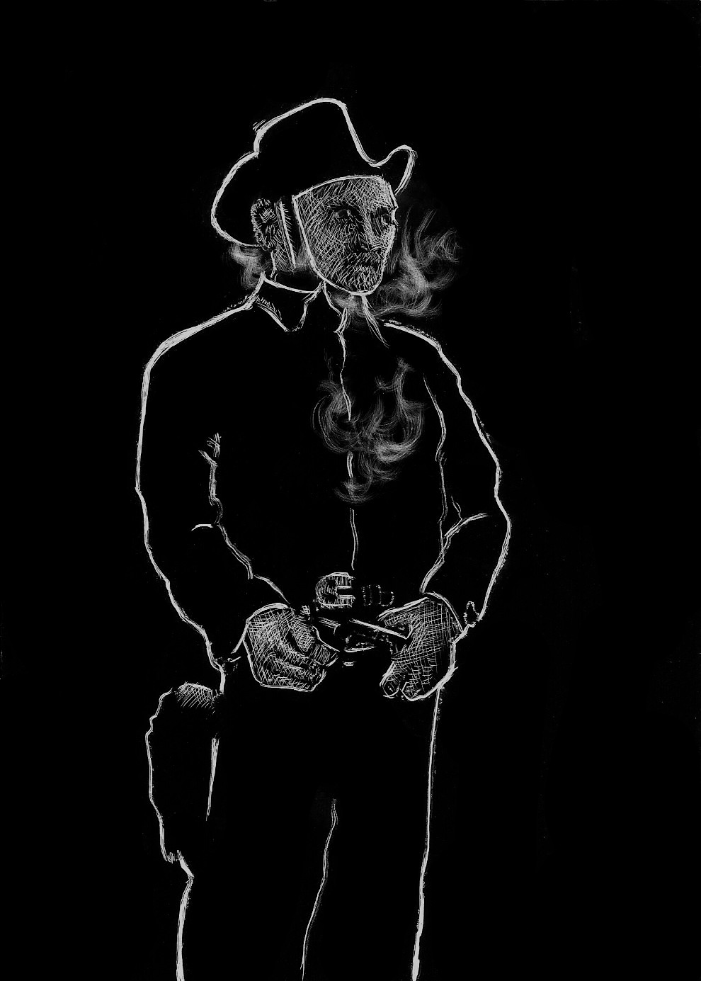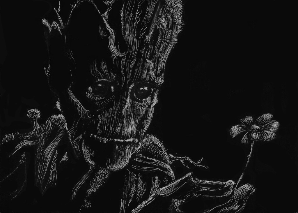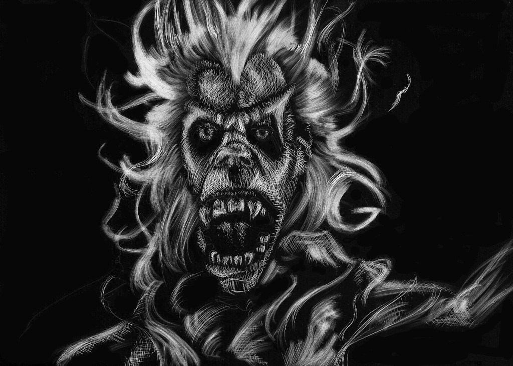 My personal concept for the challenge was to create a 5″x7″ scratchboard everyday (not the smartest of ideas as scratchboard is very labor intensive). Thematically I was taking Jake’s daily prompts and trying to relate them to a television show or movie. Some a direct illustration of the prompt some a little tongue and cheek, ie. Tasty.